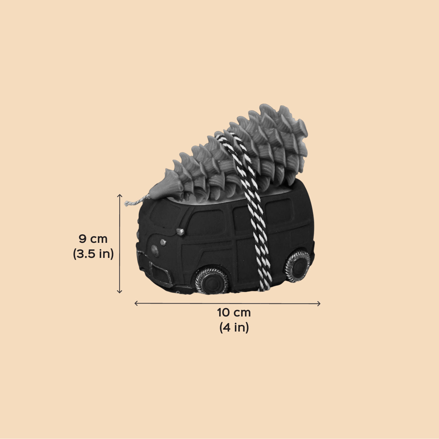 • Includes two delightful candles: a retro van and a Christmas tree, perfect for display.