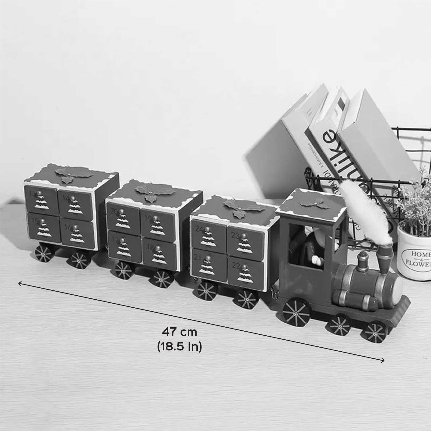 - Celebrate the spirit of Christmas with this charming wooden advent calendar shaped like a festive train.
