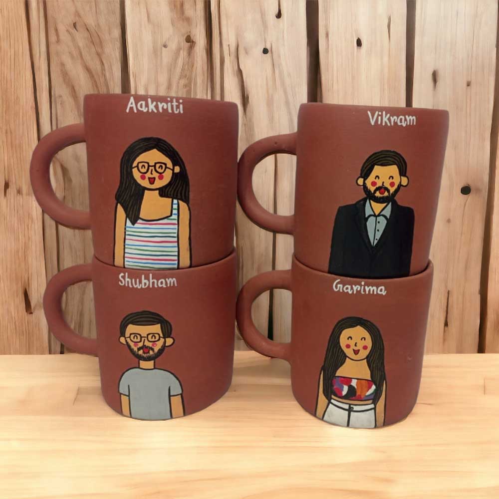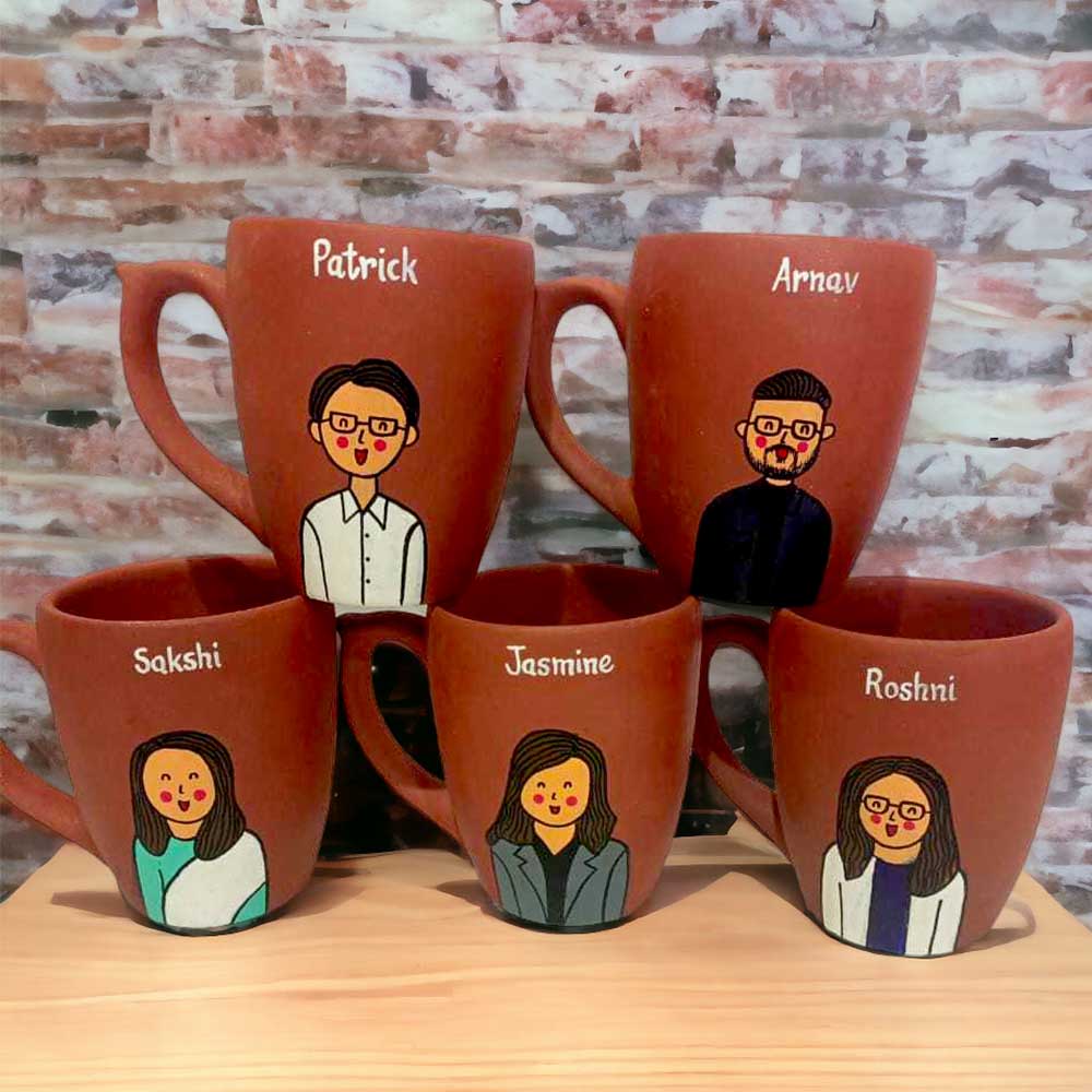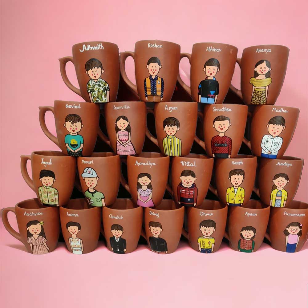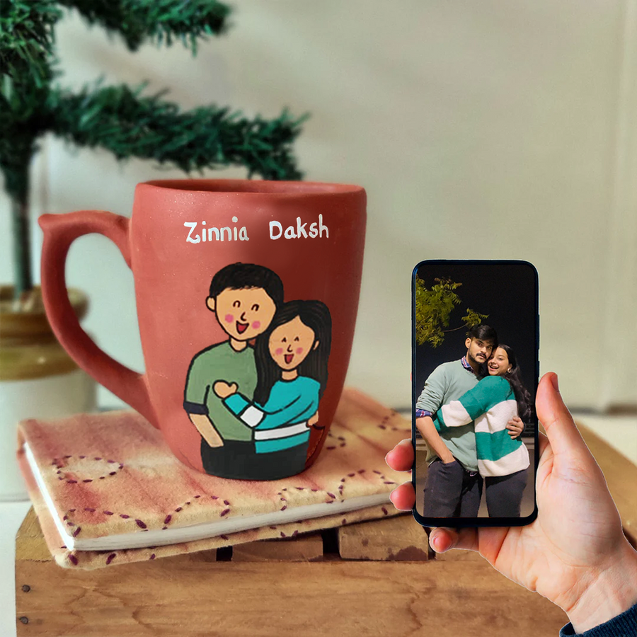 Personalise this eco-friendly hand-painted terracotta mug with your caricature & name.