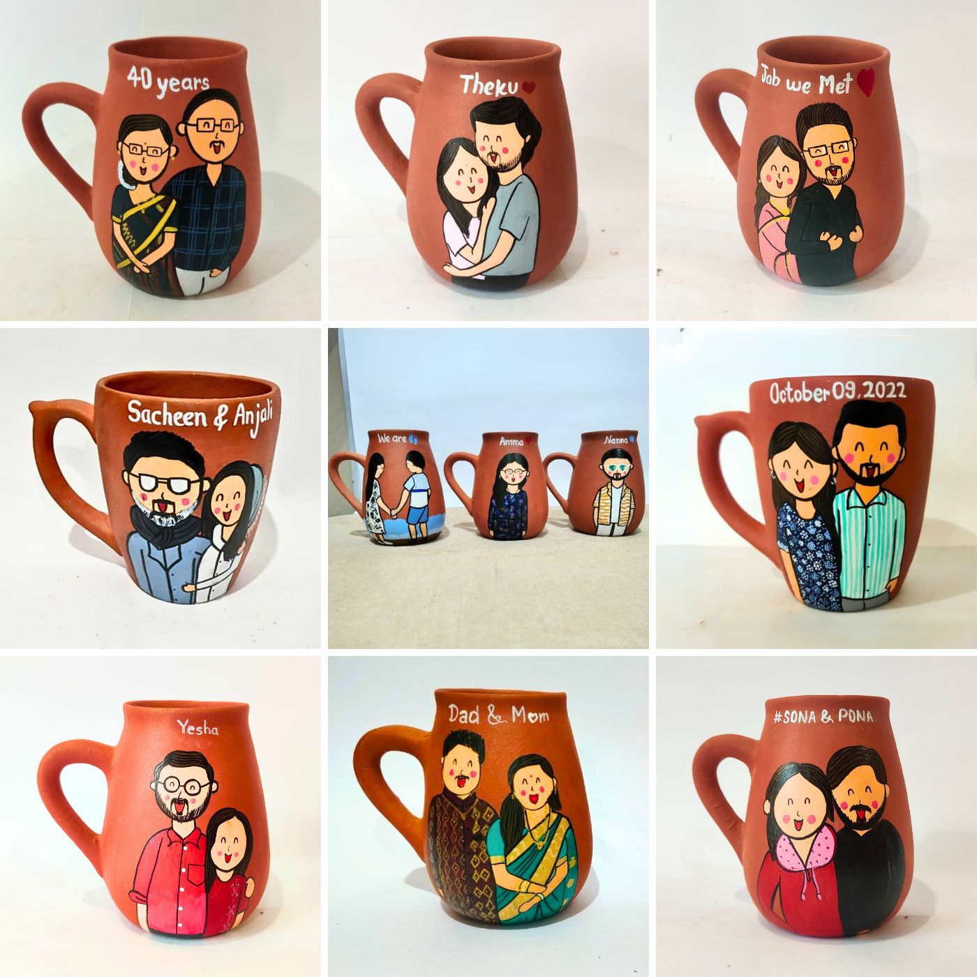 Handpainted Personalised 3D Terracotta Mug with Caricatures