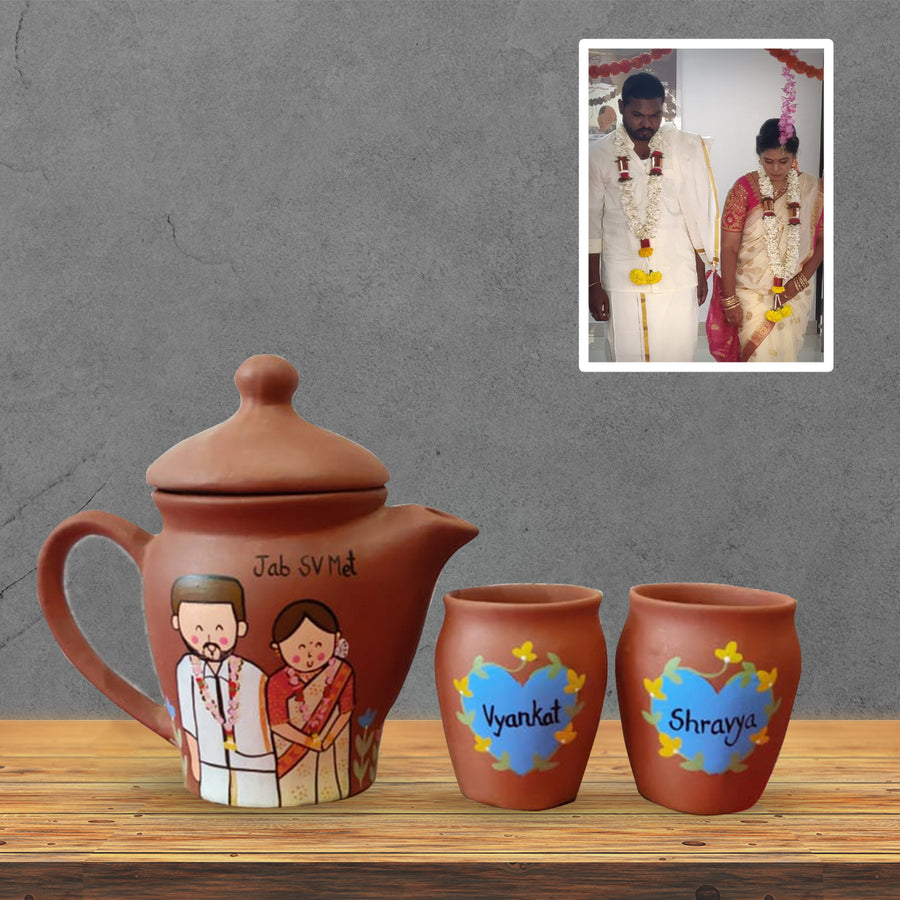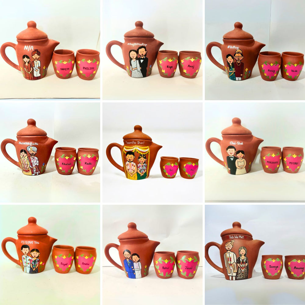 - The teapot and kulhads are skilfully handcrafted in terracotta and clay.