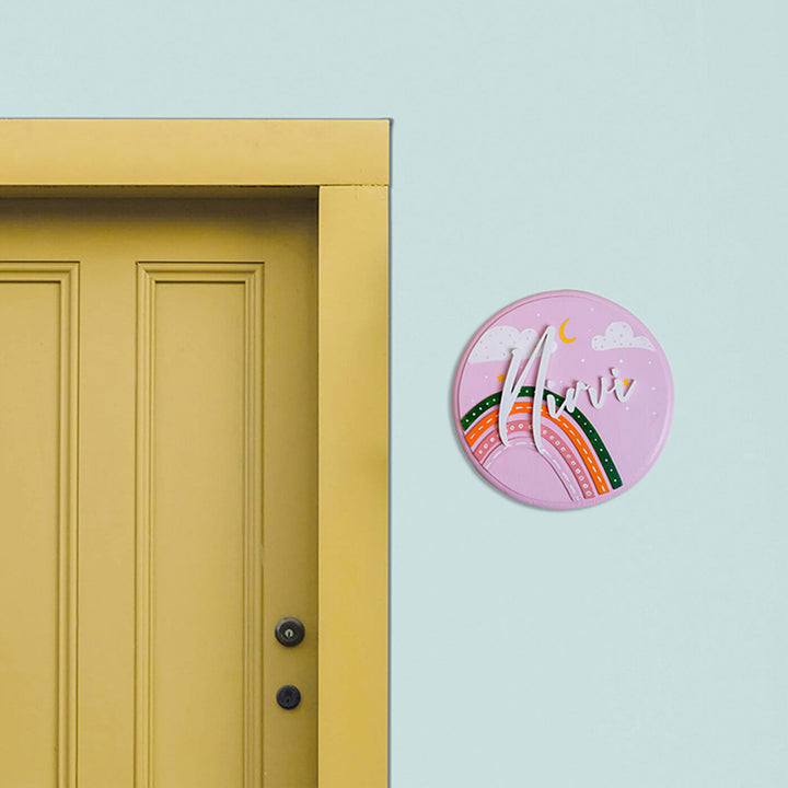 - Designed for versatility, this nameplate is perfect for covered spaces like bedrooms, playrooms, or nurseries.