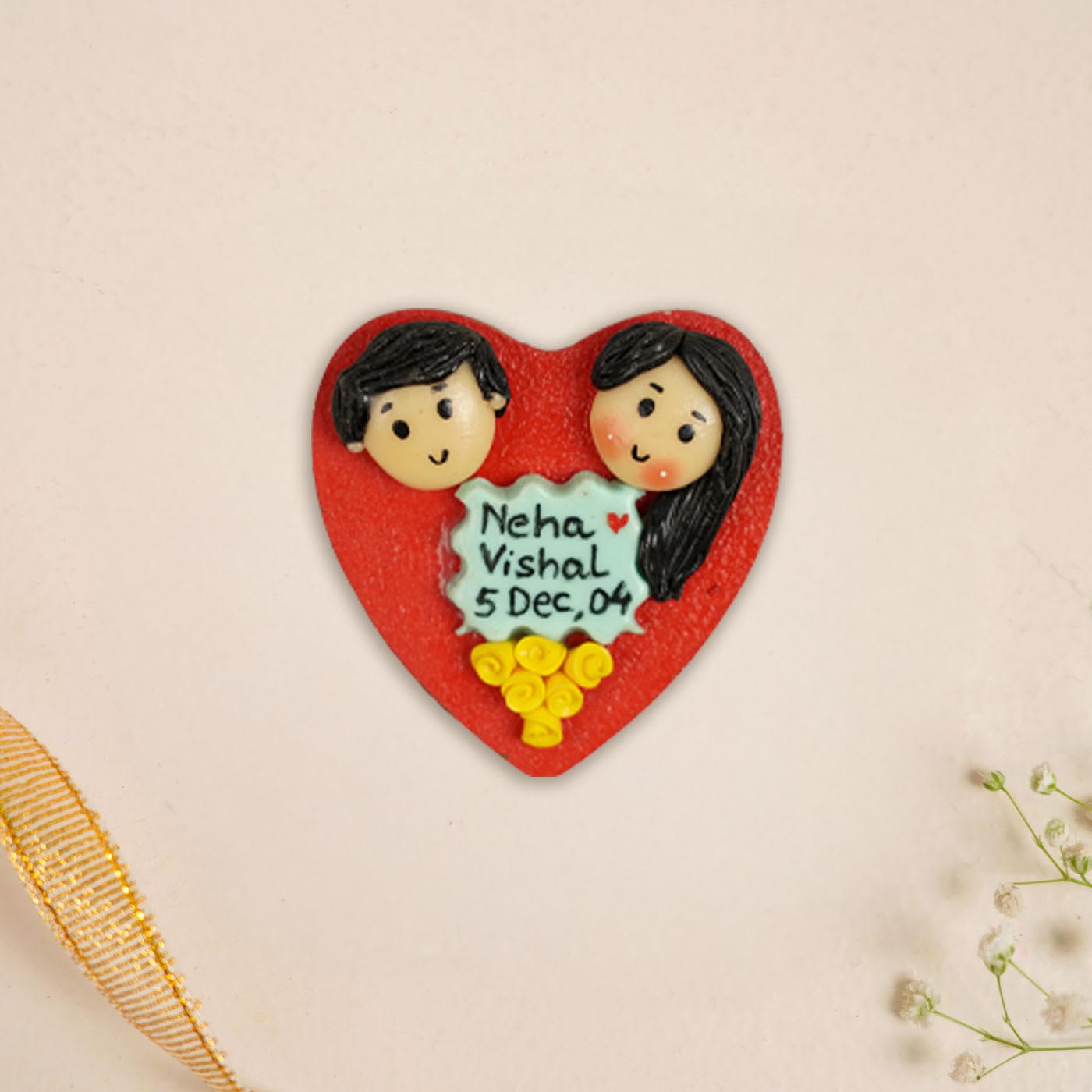 Heart With Yellow Flowers Handmade Personalized Polymer Clay Couple Fridge Magents