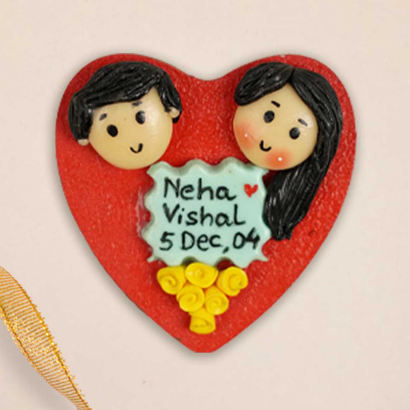 Heart With Yellow Flowers Handmade Personalized Polymer Clay Couple Fr