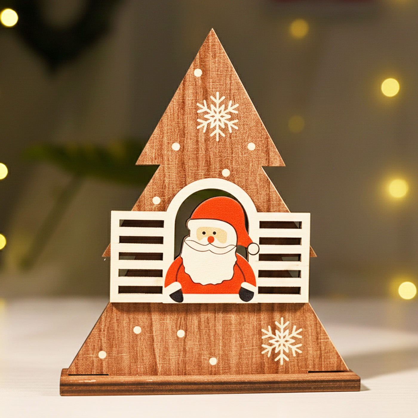 - Designed in a charming Christmas-tree shape, it features a 3D Santa Claus at the center with a window effect, creating a playful holiday scene.