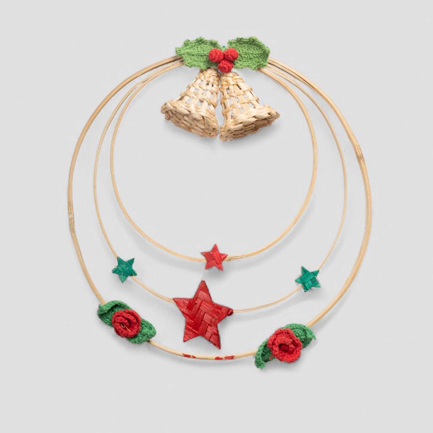 • Add a joyful jingle to your holiday décor with this handcrafted bamboo wreath.
