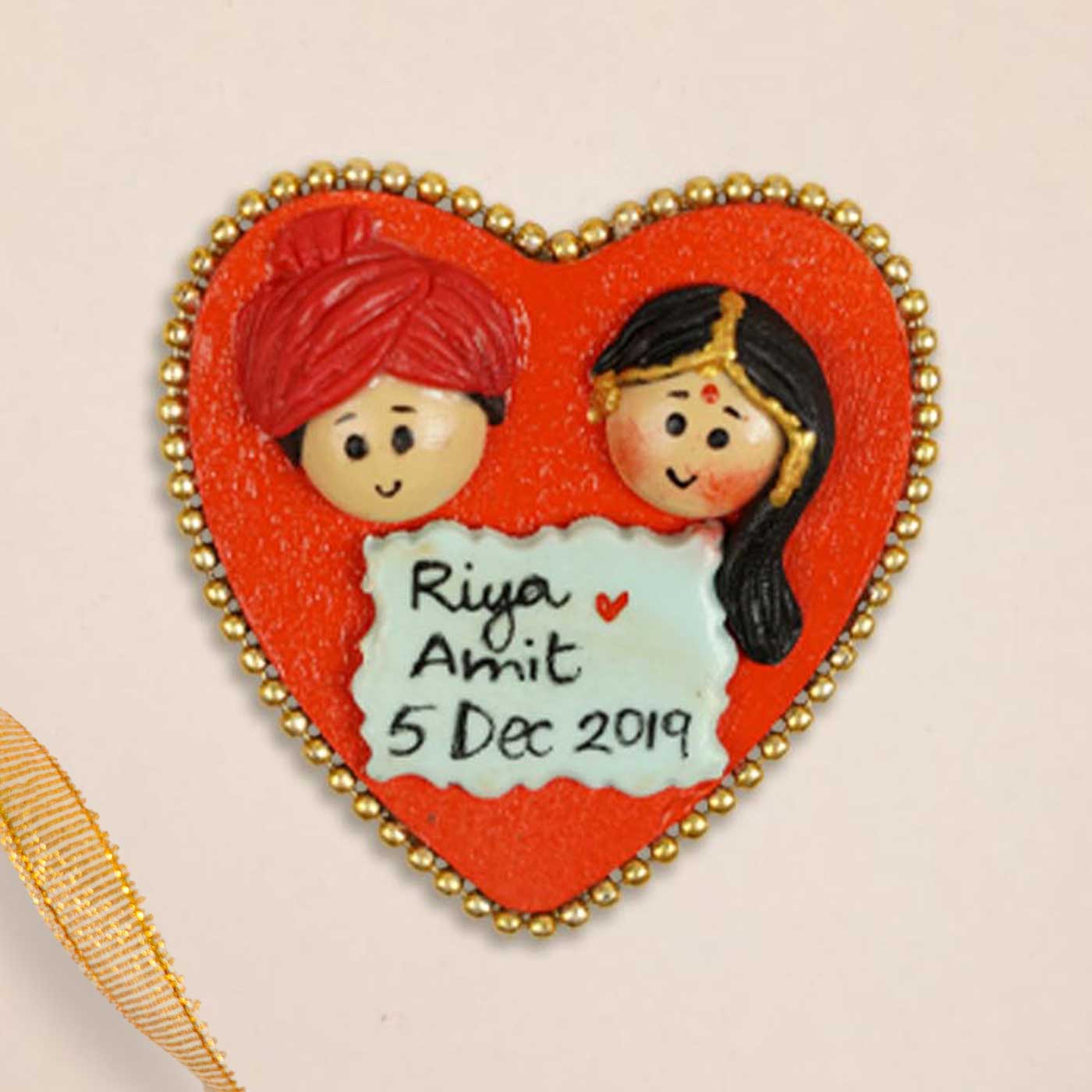 Marathi Couple Handmade Personalized Polymer Clay Heart Fridge Magents