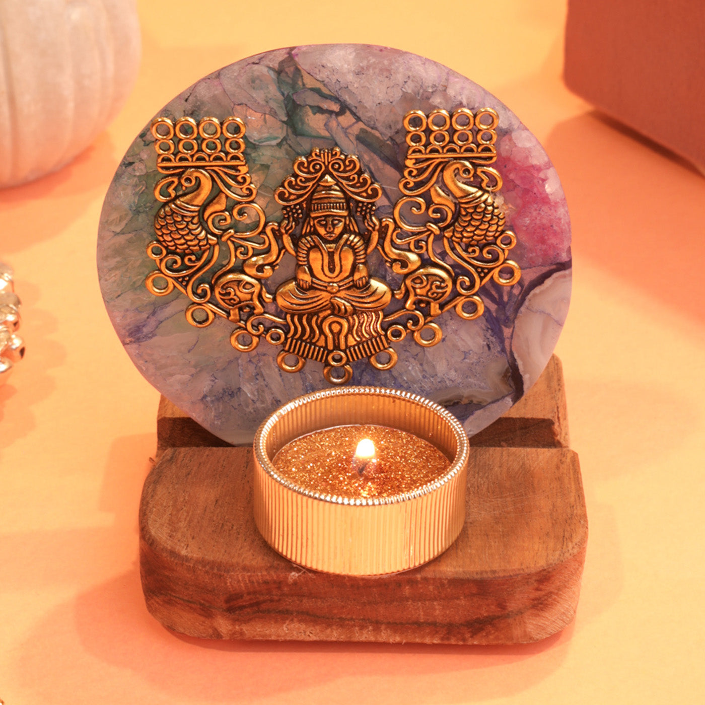 Multicolor Agate Laxmi Ji Wooden Tealight Holder