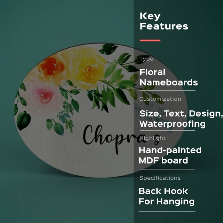Oval Hand Painted Name Plate 28 - Front View with Text Highlight