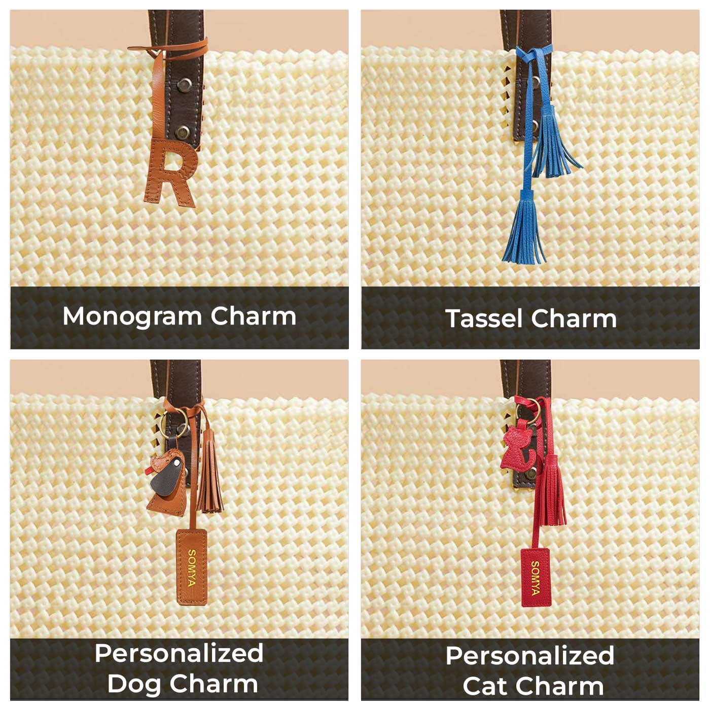 Absolutely! You can personalize your bag with your name using a hand-embossed label placed on the outside. You can also add a monogram charm or a custom pet charm — just click on ""Customize Yours"" to explore the options.