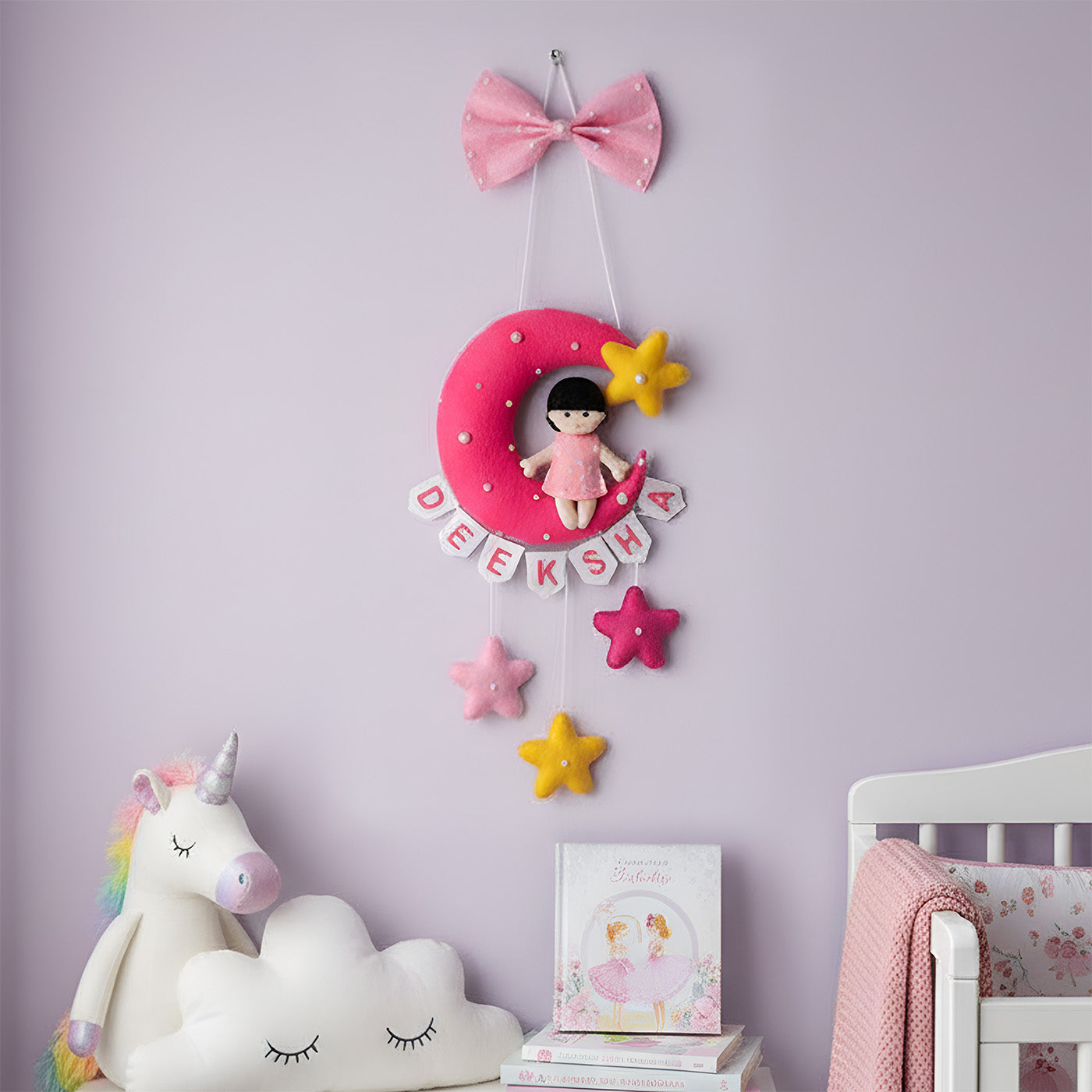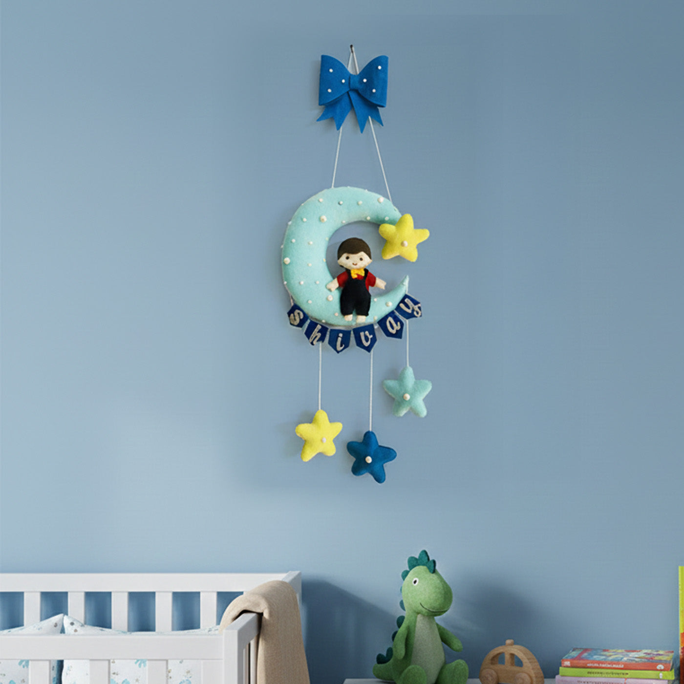 Personalised Cute Moon & Stars Theme Korean Felt Kids Name Plate