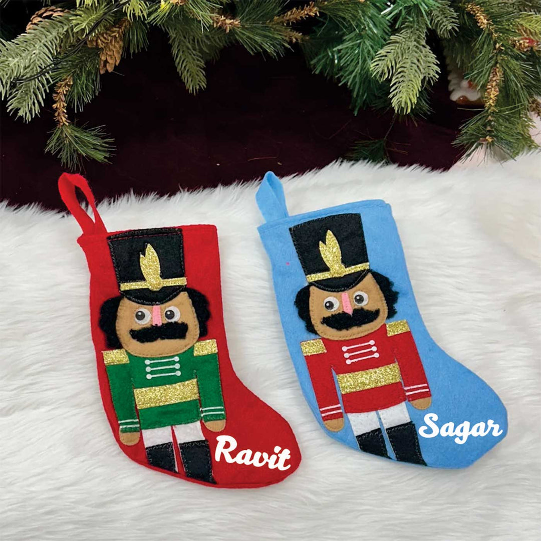 Personalized 8 Inch Mini Nutcracker Felt Stockings For Christmas Decor