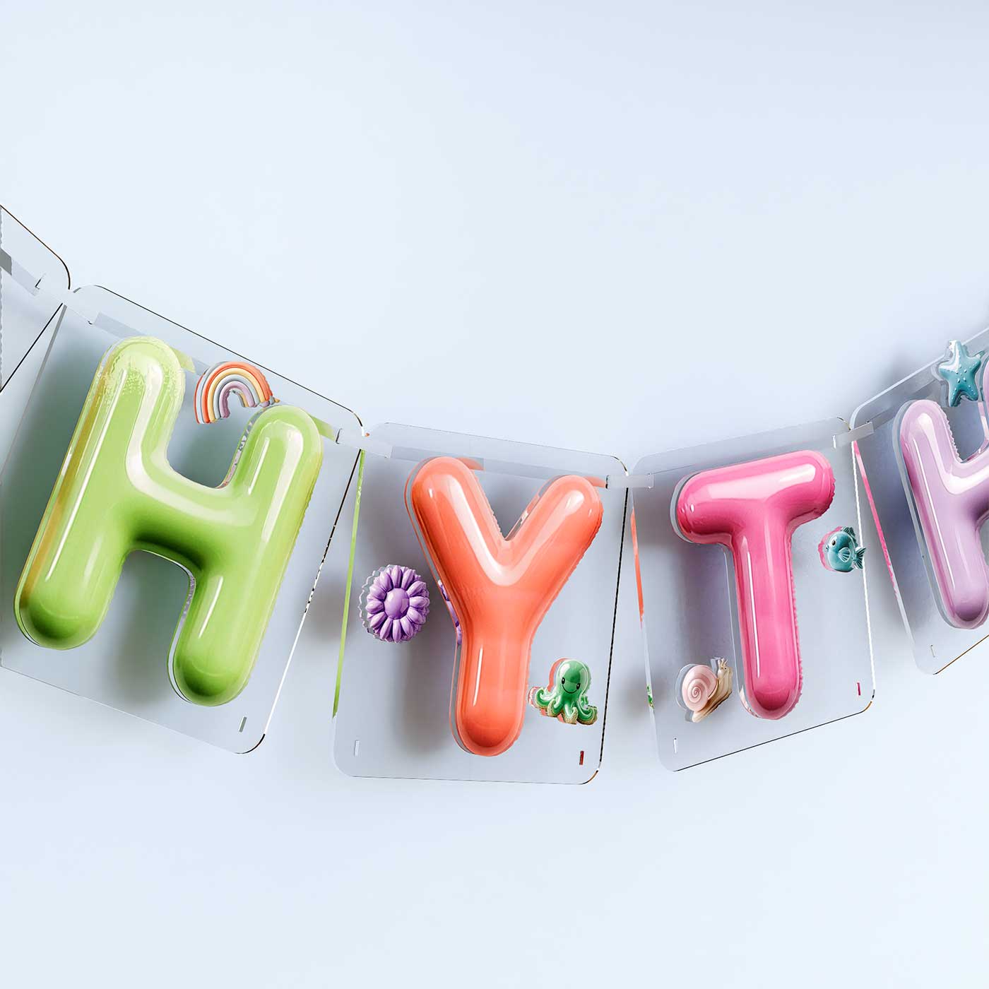 - Each letter is crafted in a pastel ceramic-look acrylic, creating a fun, modern aesthetic.