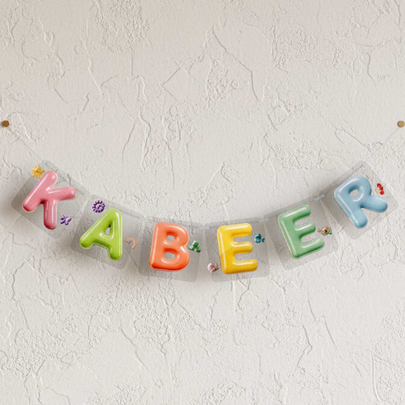 - Add a playful and personalized touch to your child’s room with this vibrant bunting.