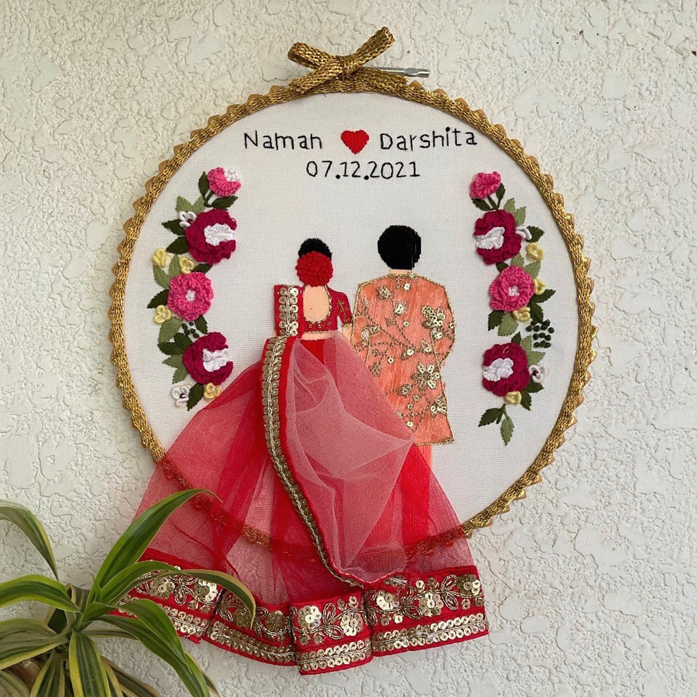 • Create a timeless memory of your special day with this personalized embroidered hoop, designed exclusively for couples.