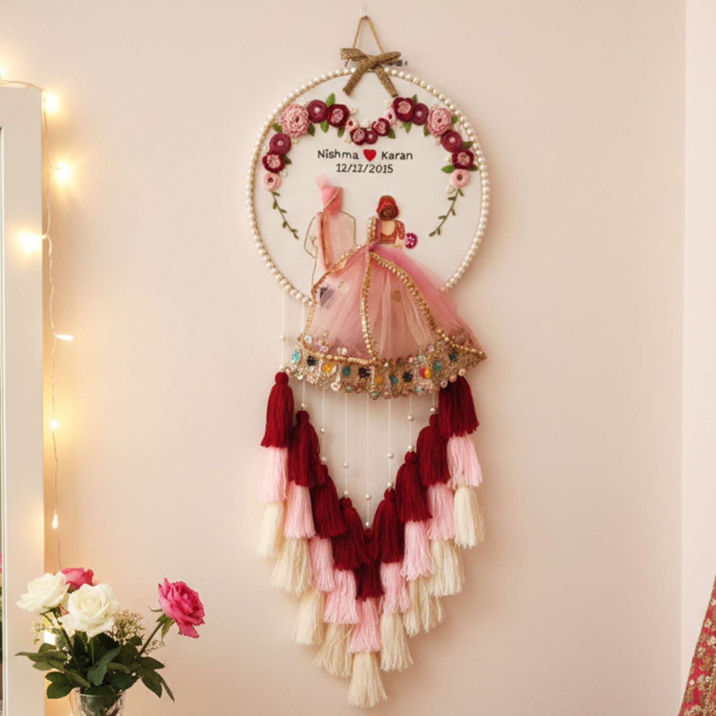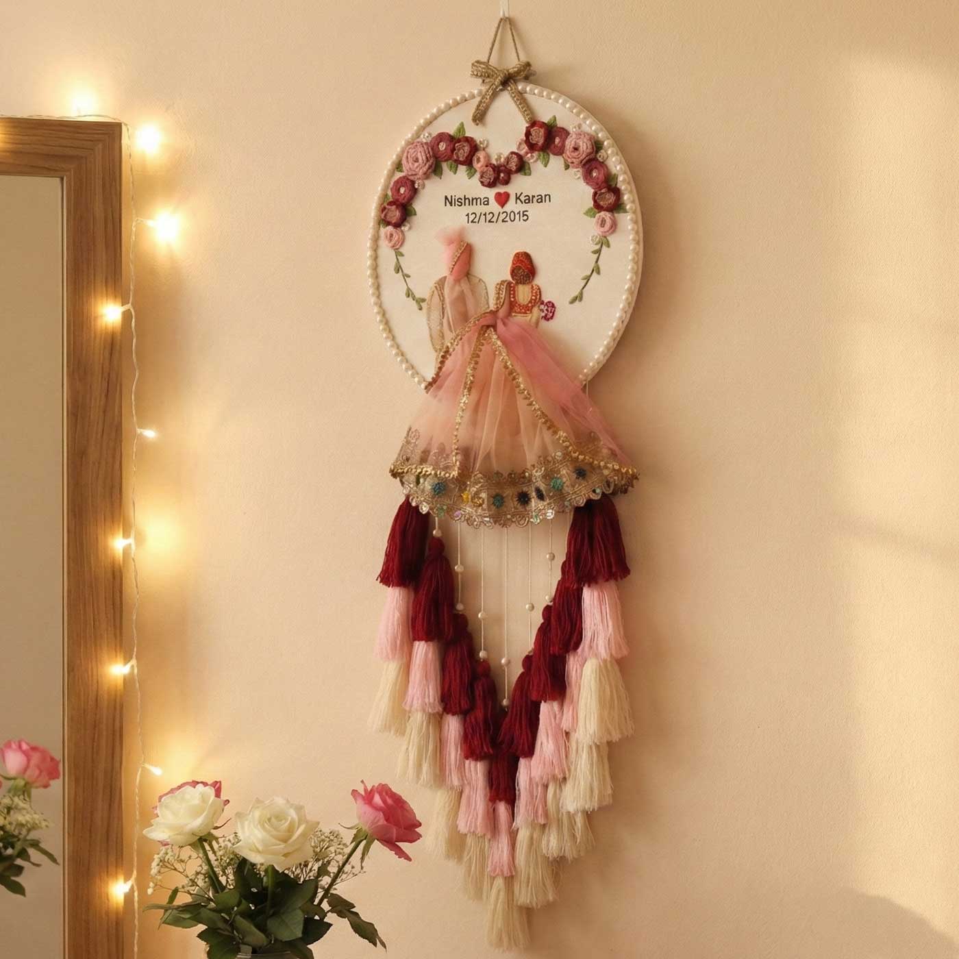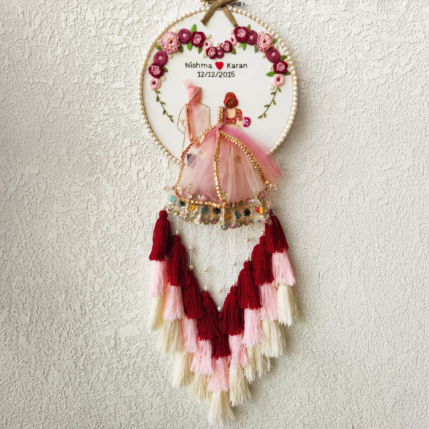 - Create a timeless memory of your special day with this personalized embroidered hoop, designed exclusively for couples.