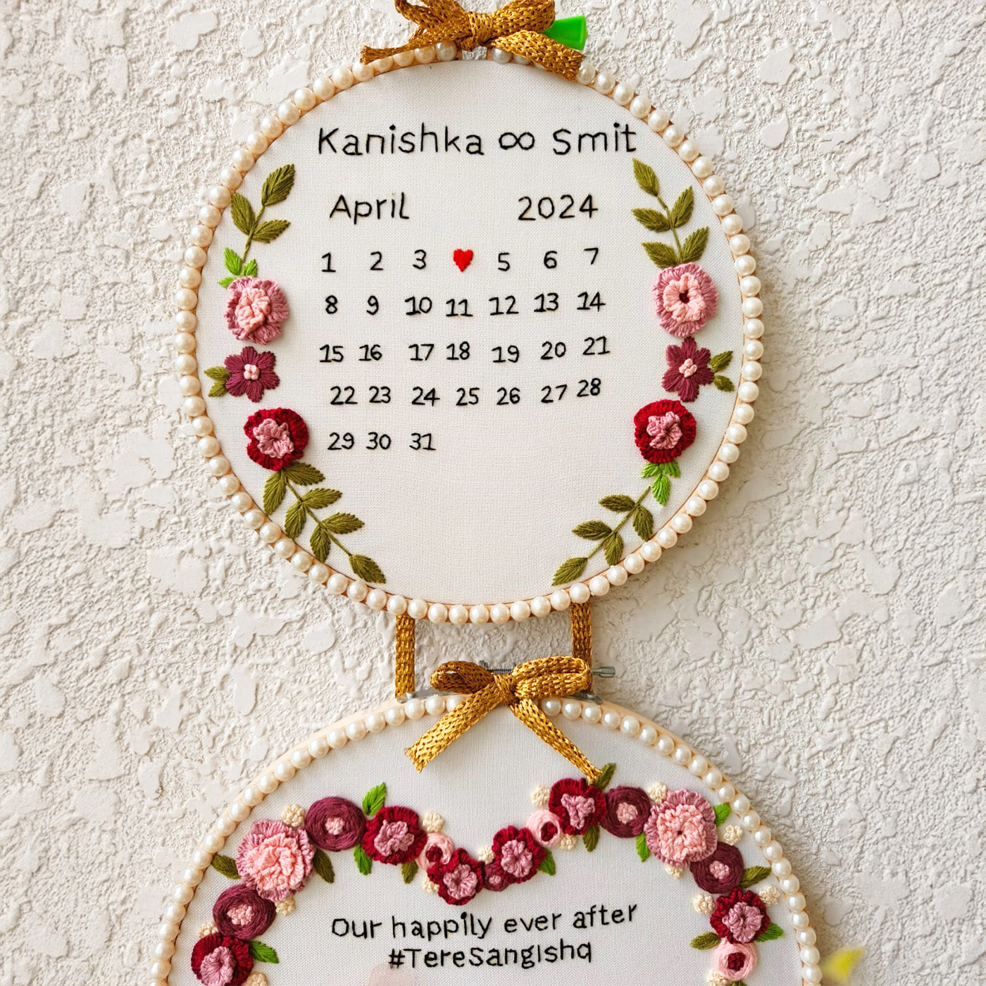 - Create a timeless memory of your special day with this personalized embroidered hoop, designed exclusively for couples.