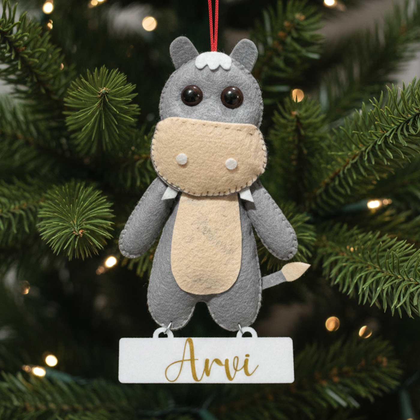 Personalized Handmade Felt Baby Hippo Christmas Ornament