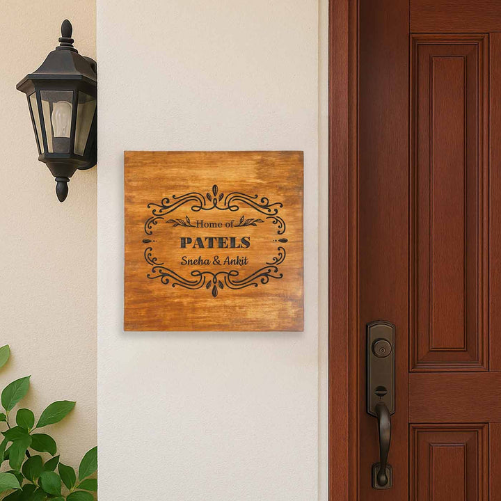Add a touch of rustic elegance to your space with this personalized handmade square wooden name plate.