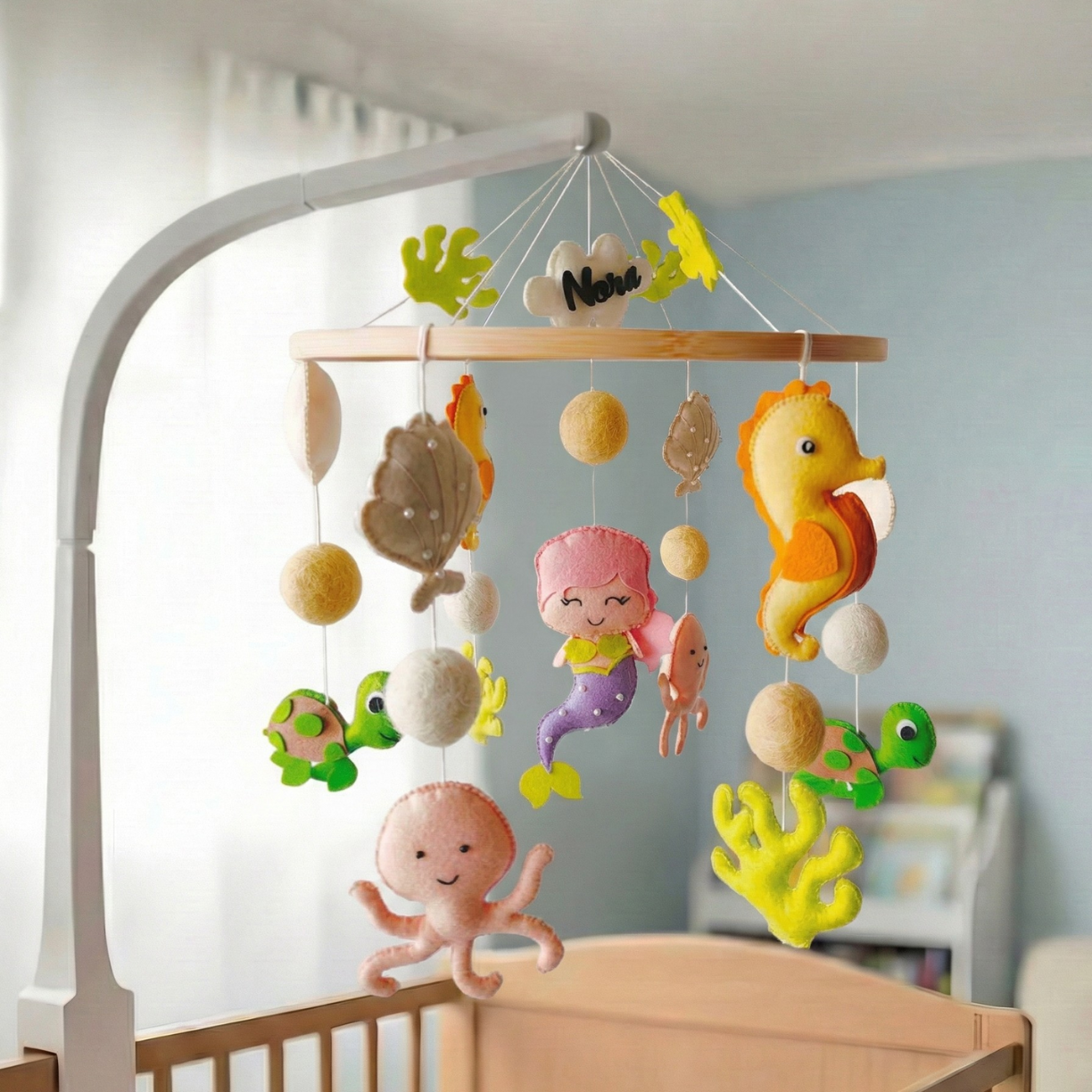 - Say hello to peaceful nights with this enchanting cot mobile, perfect for bassinets and cribs.