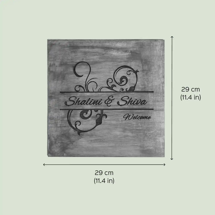 Add a touch of rustic elegance to your space with this personalized handmade square wooden name plate.
