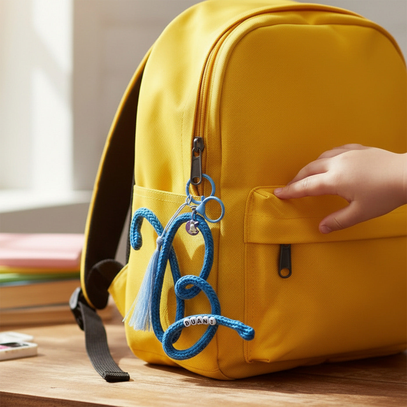 - Handcrafted knitted wire alphabet keychain designed to add a personalized and stylish accent to your everyday accessories.