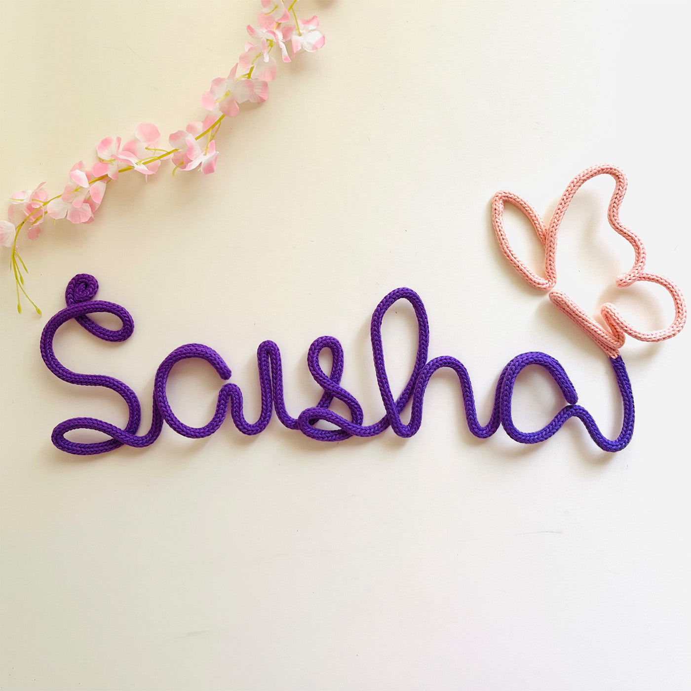 - Flutter into charm with a butterfly-themed knitted wire name plate.