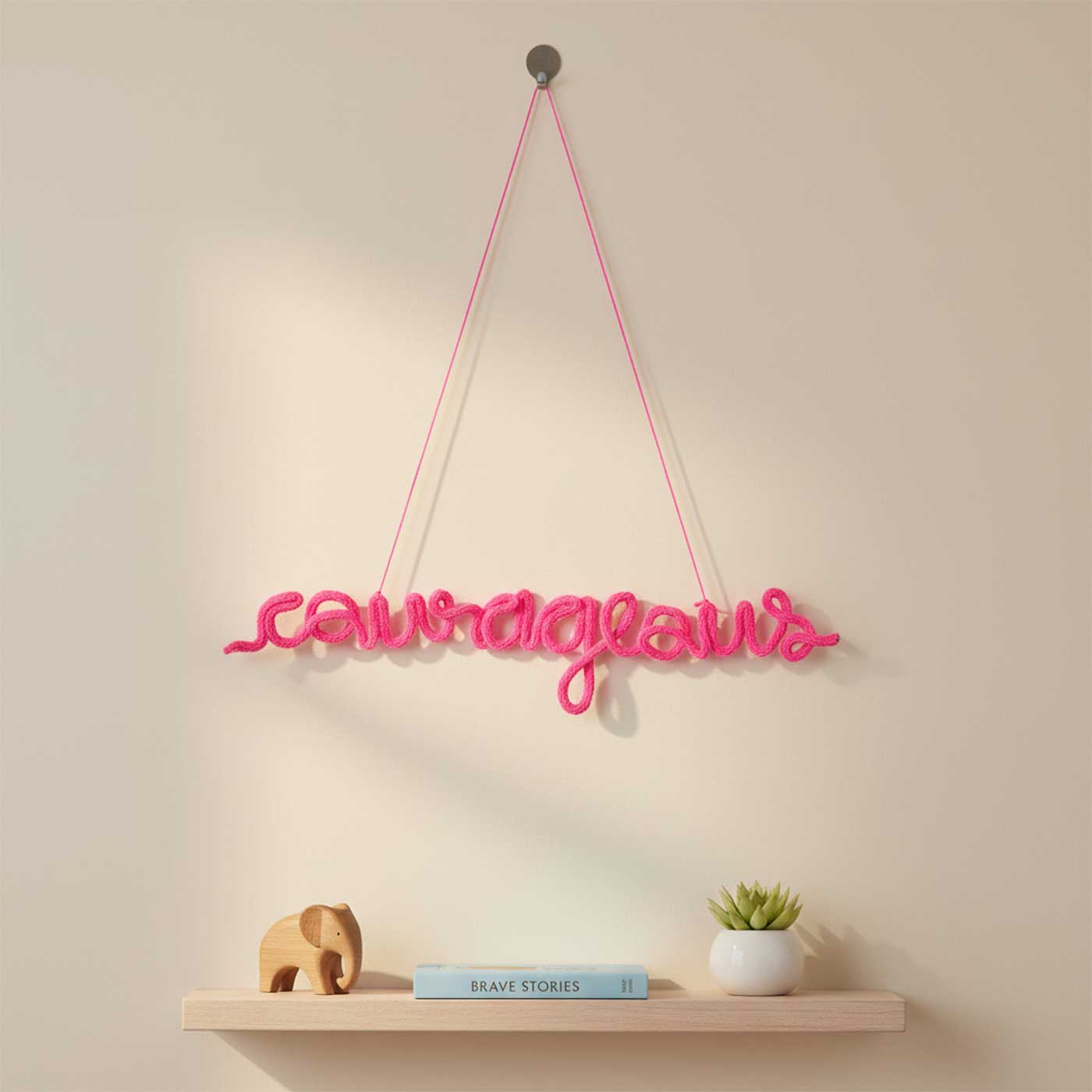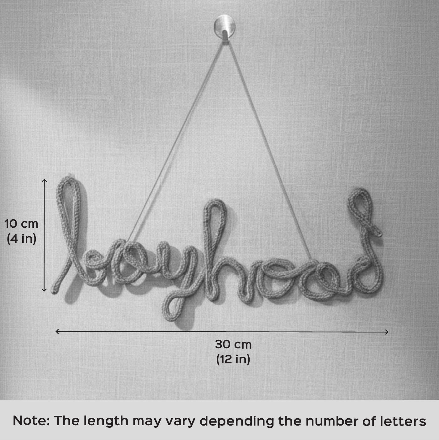 - Each name is carefully shaped using soft yarn and sturdy wire, then finished with a matching string for easy hanging.