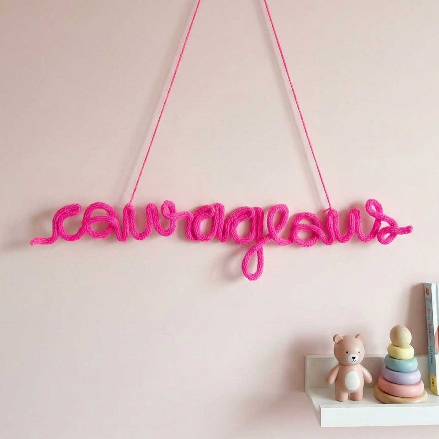 - Add a sweet, handmade touch to your child’s space with this personalised knitted name hanging.