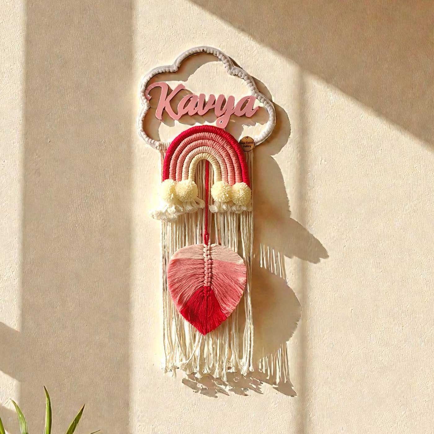 • Featuring layered macrame cord art with soft tassels and rainbow motifs, each name plate is meticulously handcrafted using high-quality cotton yarn.