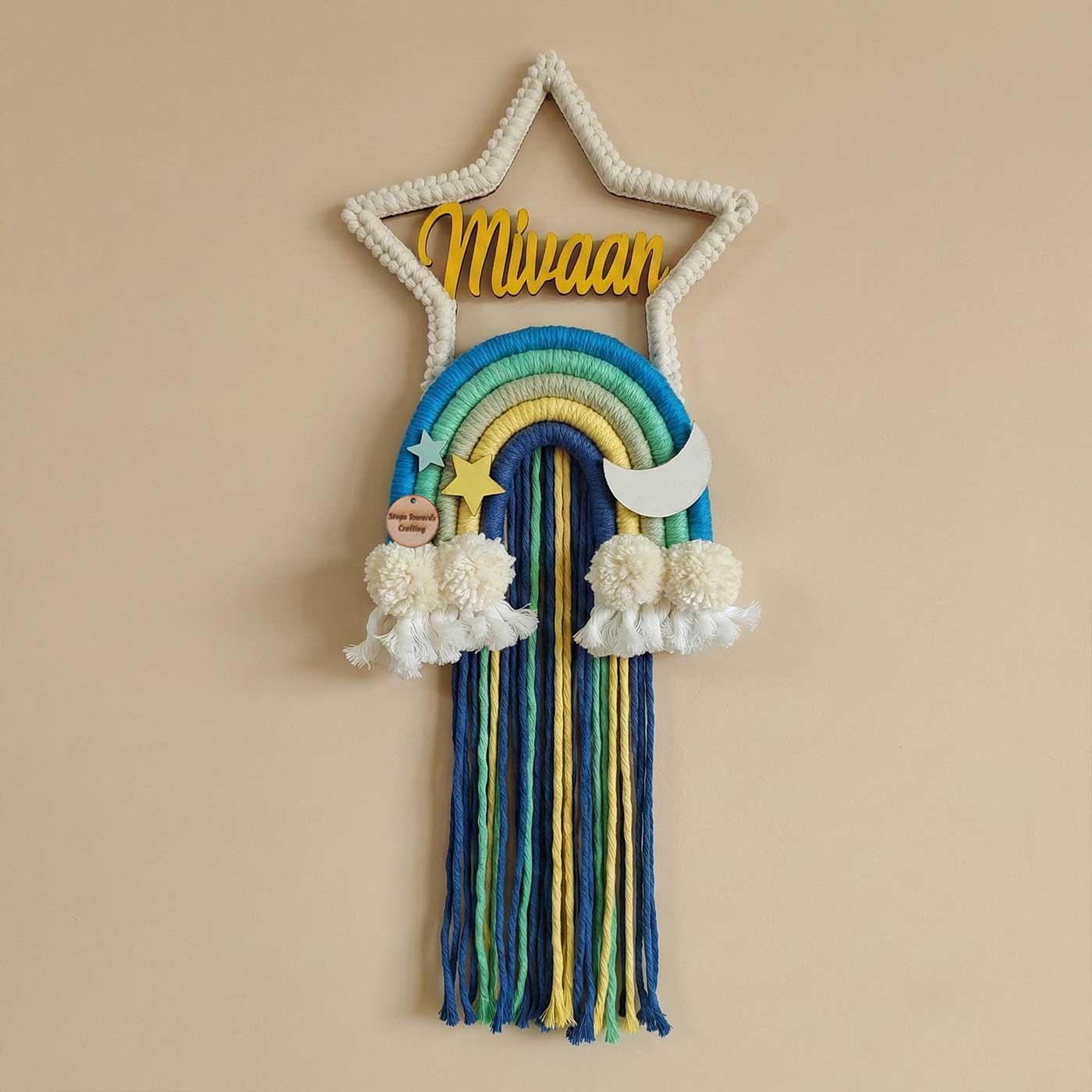 • Personalize your little one’s space with this Personalized Macrame Star Theme Kids Name Plate, thoughtfully handcrafted with adorable star detailing.