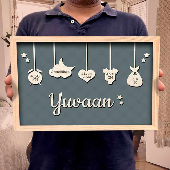 - Celebrate the arrival of a new bundle of joy with this personalized wooden print nameplate.