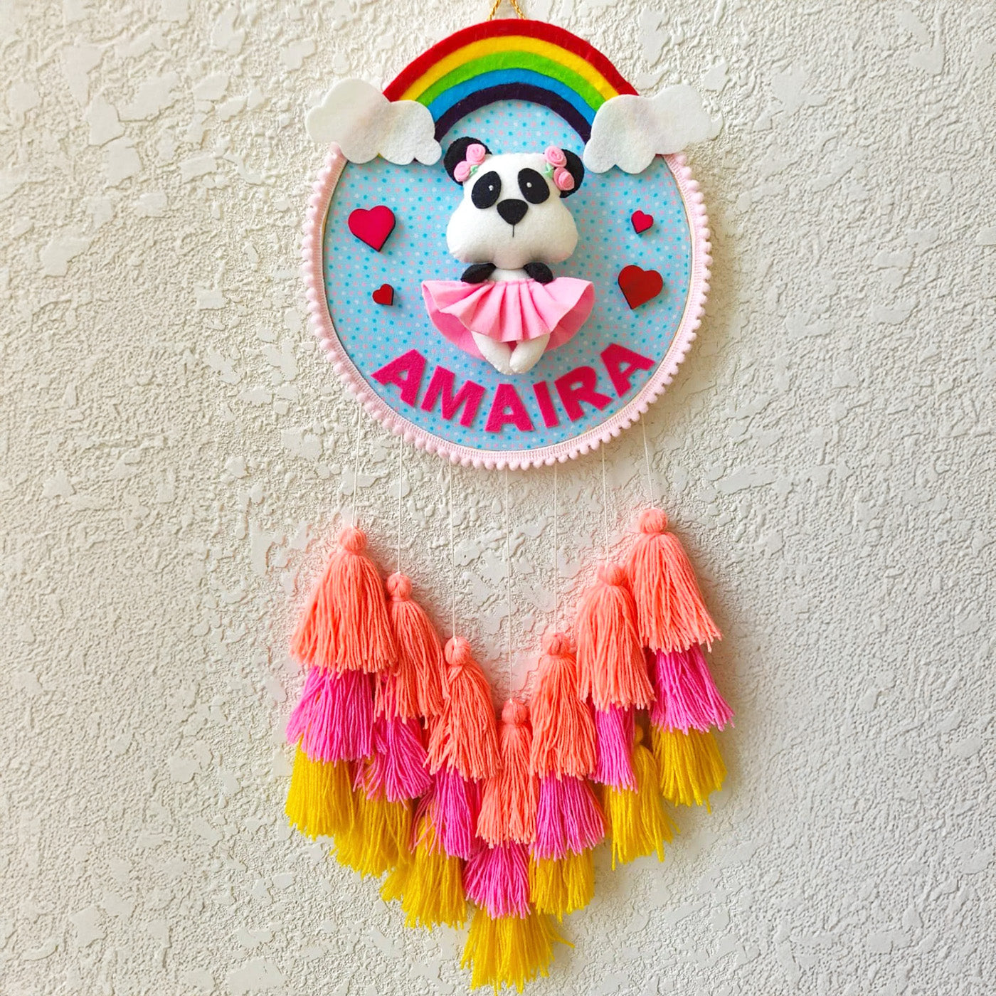 Personalized Panda Girl Theme Kids Name Plate With Tassels