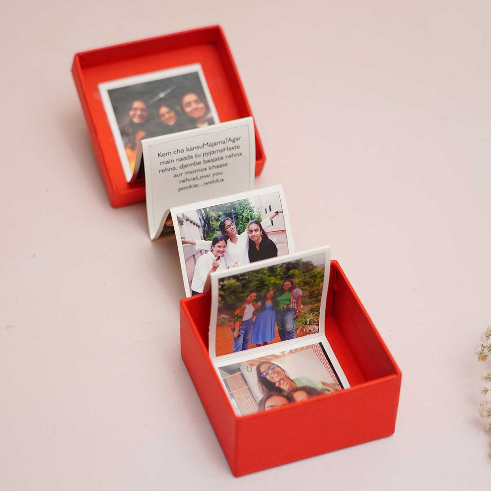 - This mini photo album is big on memories! Customize it with your favourite photos, quotes, names, and dates to design a unique keepsake.
