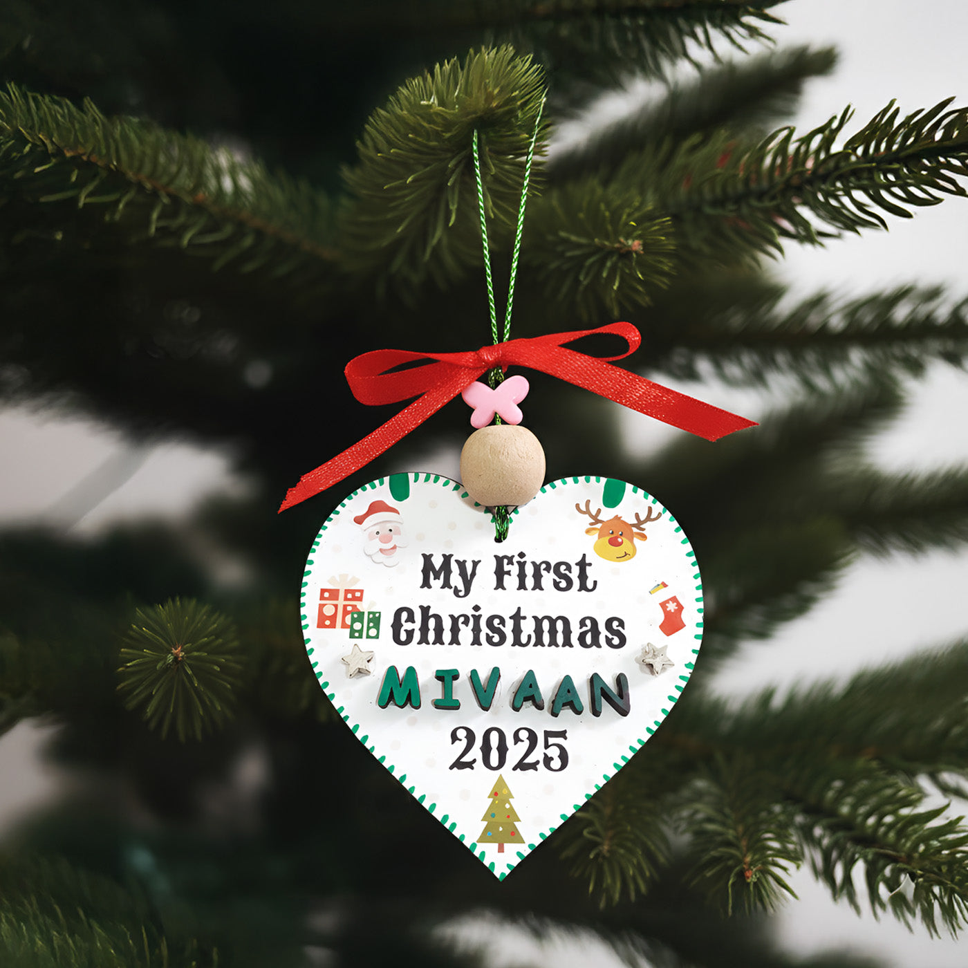 Personalized White My First Christmas MDF Wood Ornament For Tree Decor