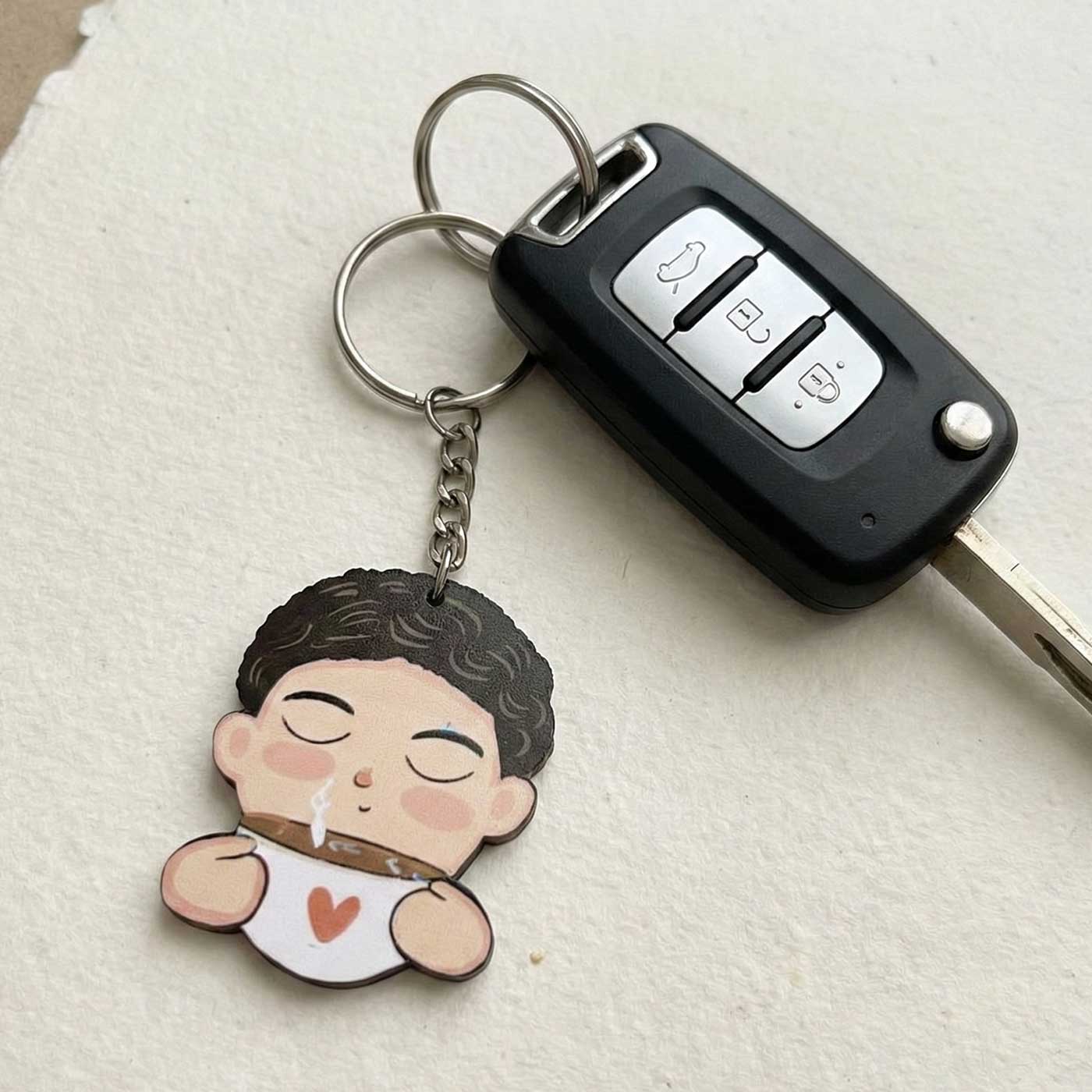 - Crafted from durable MDF wood, this keychain is designed for everyday use.