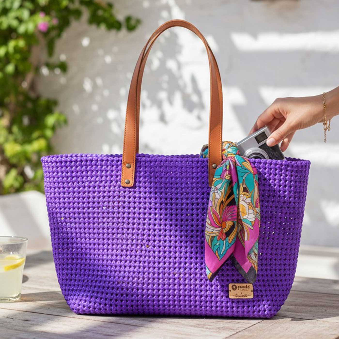 Purple Solid Mukhya Knot Handmade Koodai Beach Bag