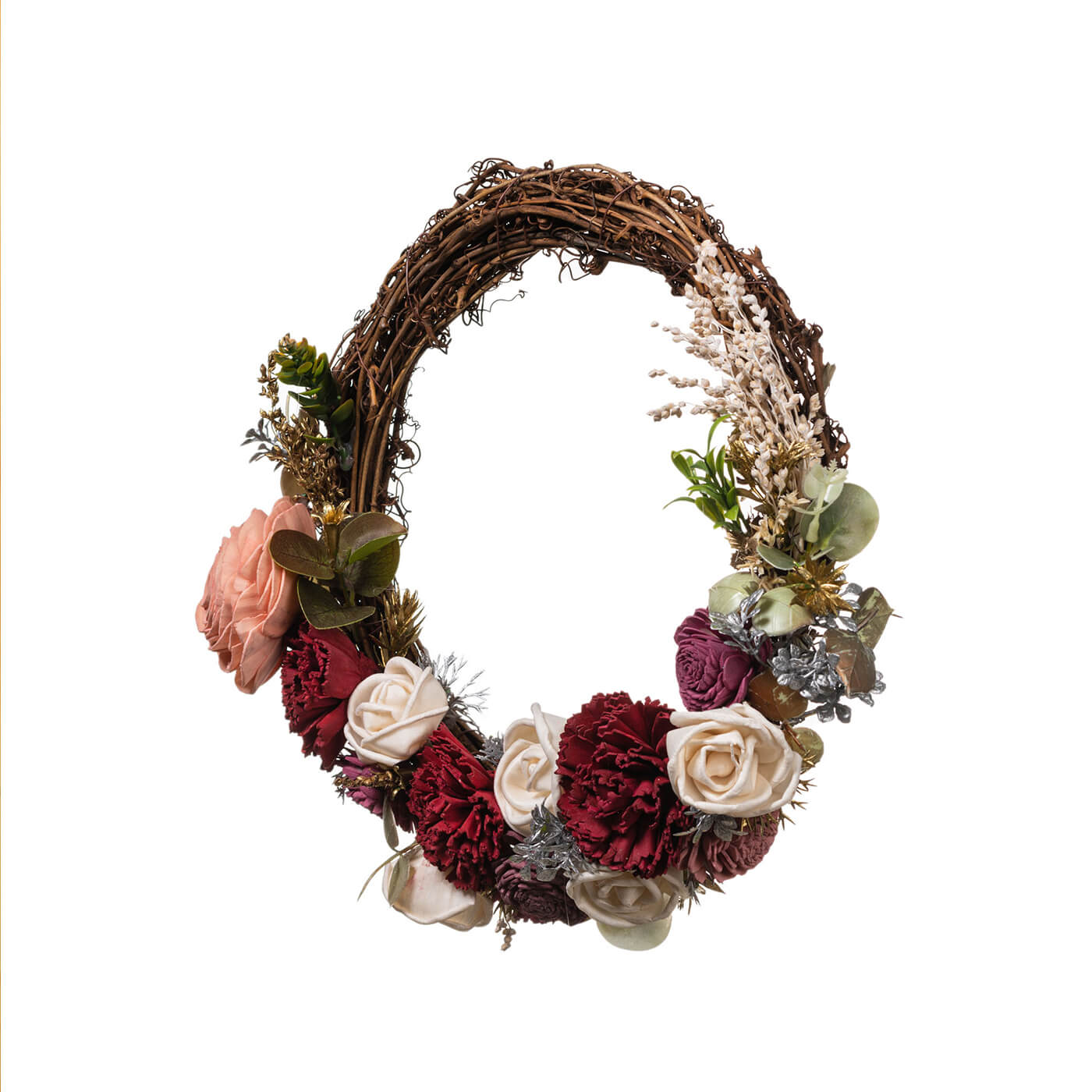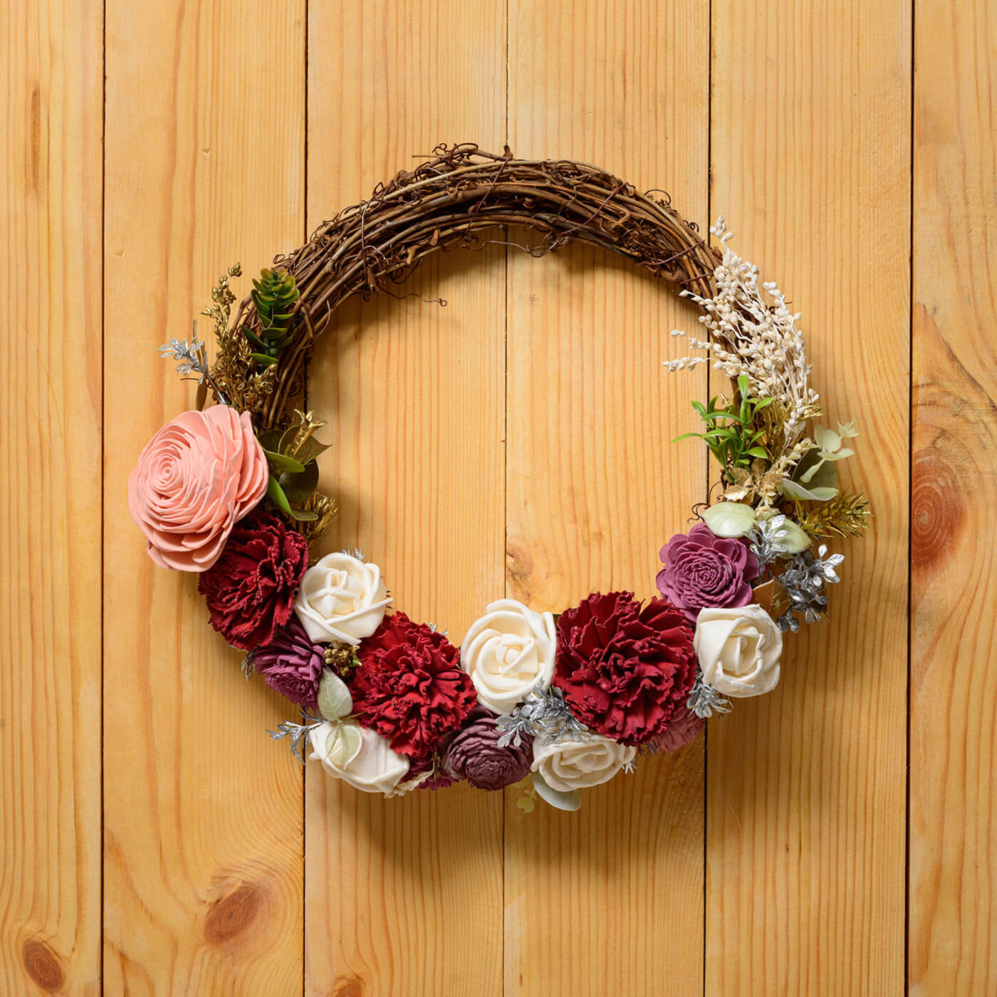 Red & Burgundy Grapevine and Solawood Flowers Wreath