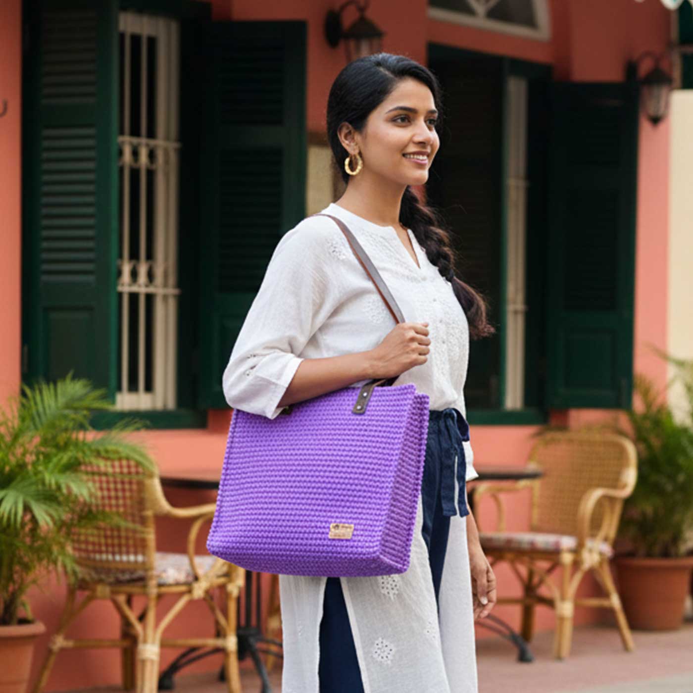 Solid Purple Mukhya Knot Handmade Koodai Tote Bag