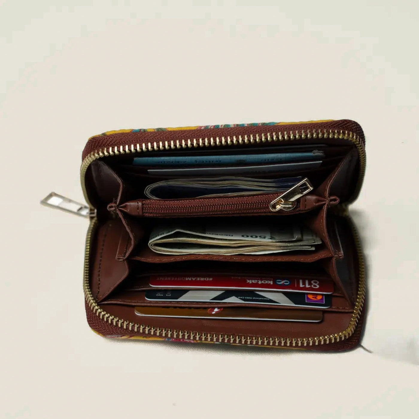 • Spacious enough to comfortably hold cards, cash, and other small everyday essentials.