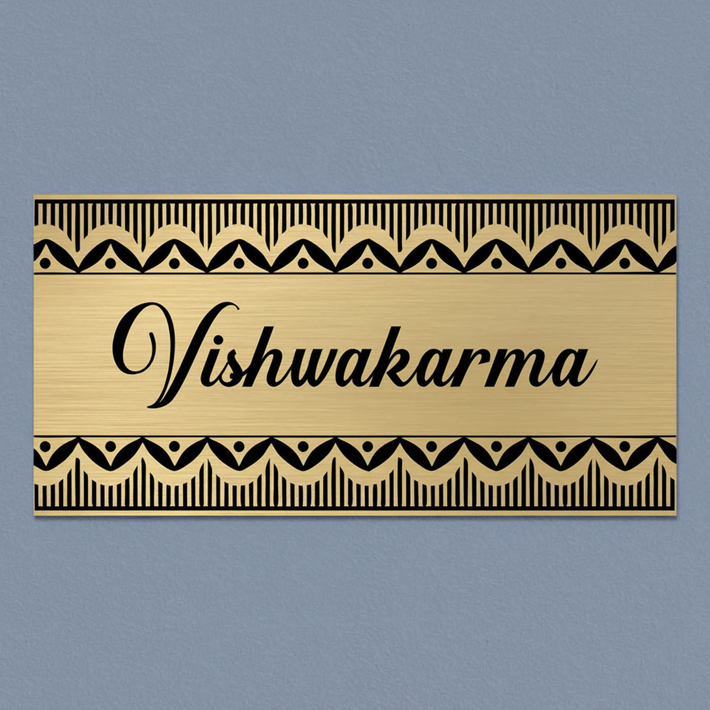 Line Art Engraved Personalized Golden Metal Name Plate | Rectangular, Outdoor, Weather Proof