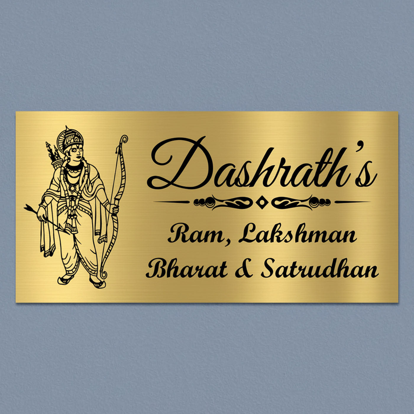 Lord Ram Engraved Personalized Golden Metal Name Plate | Rectangular,